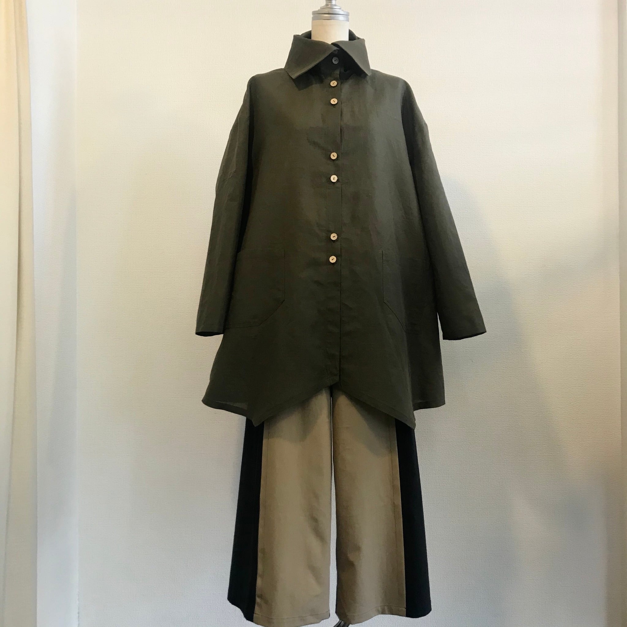 前裾のカッティングとポケットの形も共通したラインでまとめています。
